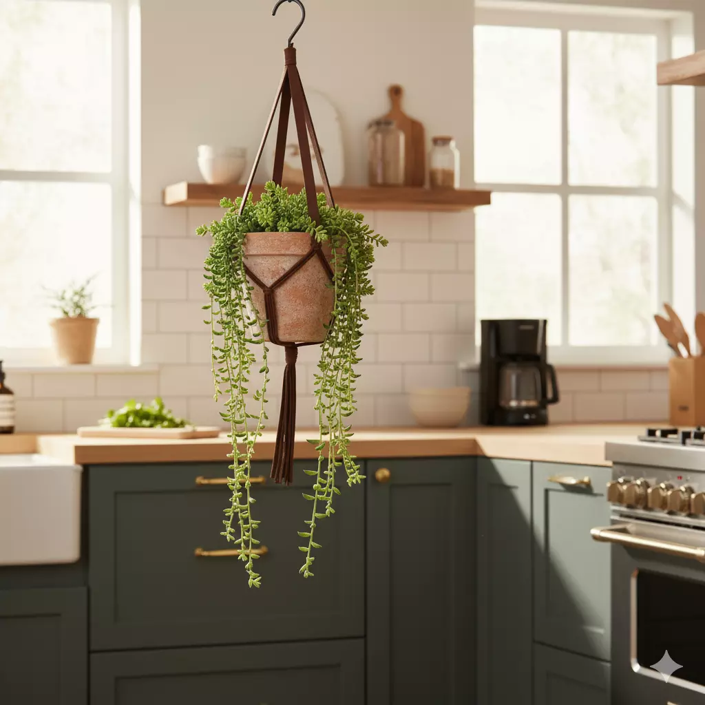 Originaria de México, esta planta es un verdadero tesoro para los amantes de las suculentas y las plantas colgantes. Sus tallos pueden alcanzar longitudes considerables, cubiertos por cientos de pequeñas hojas carnosas de un suave color verde grisáceo, a veces con toques azulados o rosados bajo una luz intensa. El Sedum Burrito es perfecto para colgar en cestas, macetas altas o estantes donde sus «colas» puedan lucirse libremente, creando un efecto cascada verde. Su fácil cuidado la convierte en una opción fantástica para principiantes y para aquellos que buscan añadir un toque exótico y despreocupado a su colección.